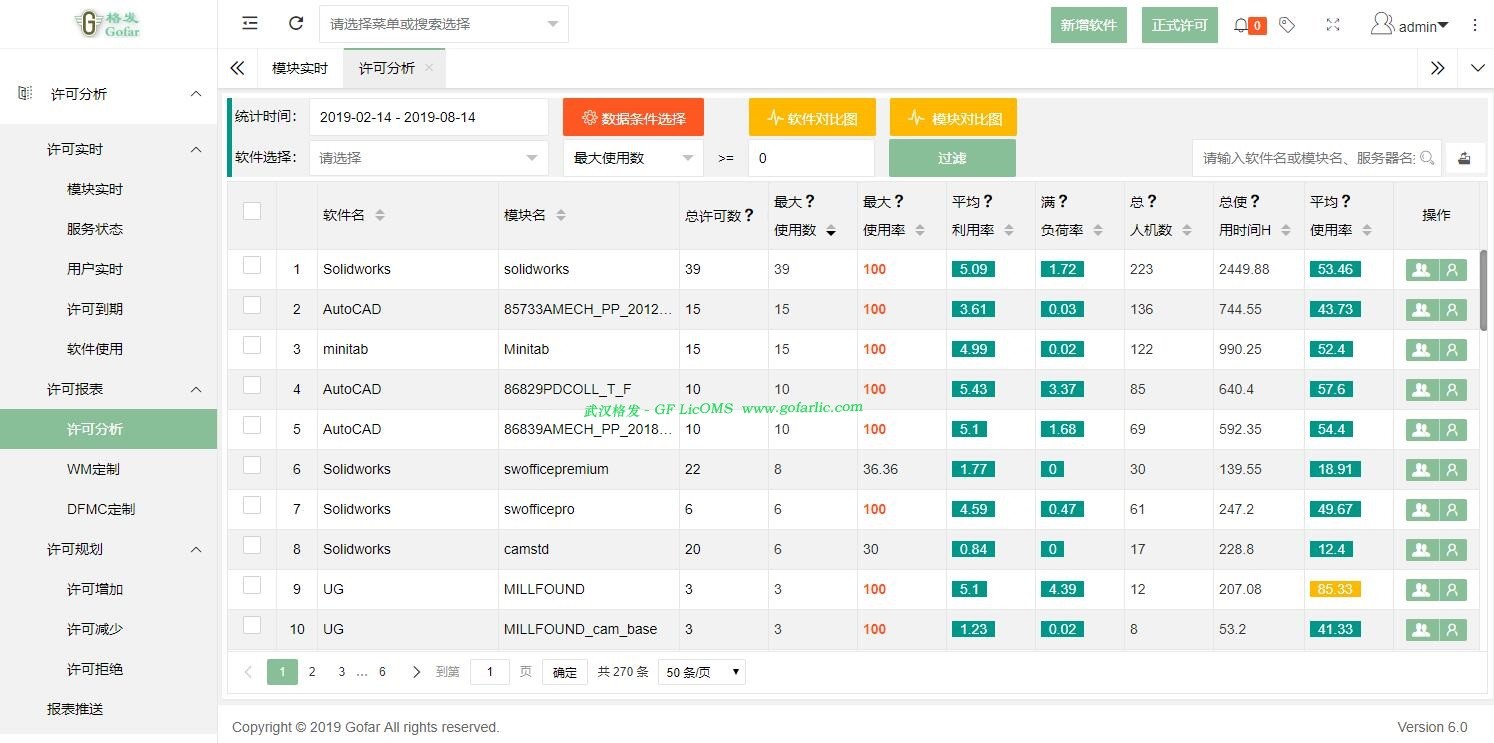 从软件、模块、用户、部门、机器等全方位监控与分析软件许可证(License)的使用情况,为信息化管理运营提供决策参谋