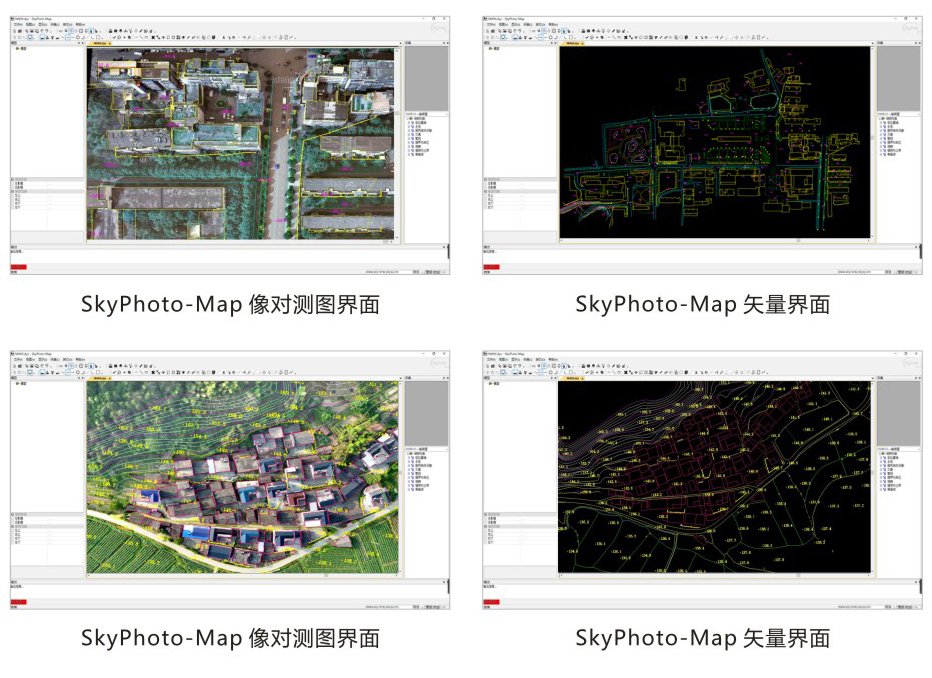 SkyPhoto-Map是由我公司自主研发,并基于DSM采集、编辑、修补DLG的立体测图软件。Map 延用传统的采编工具,将其延展至新型三维数据采编,同时结合新型三维数据空间特点,新增智能分析支持,实现三维空间建筑智能辨识,自动提取模型高程、定位信息,并将其矢量化边界成图于界面,做到采集 高效、便捷、精确、智能。