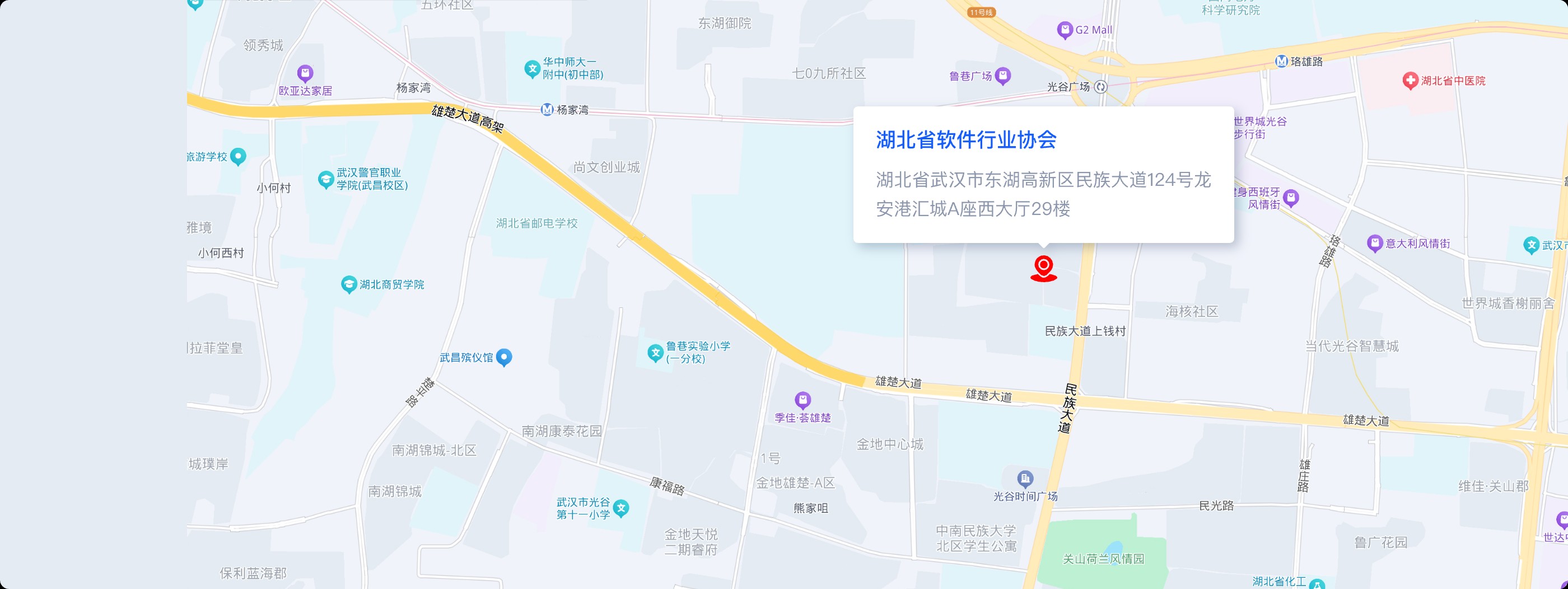 湖北省武汉市东湖高新区民族大道124号龙安港汇城A座西大厅29楼