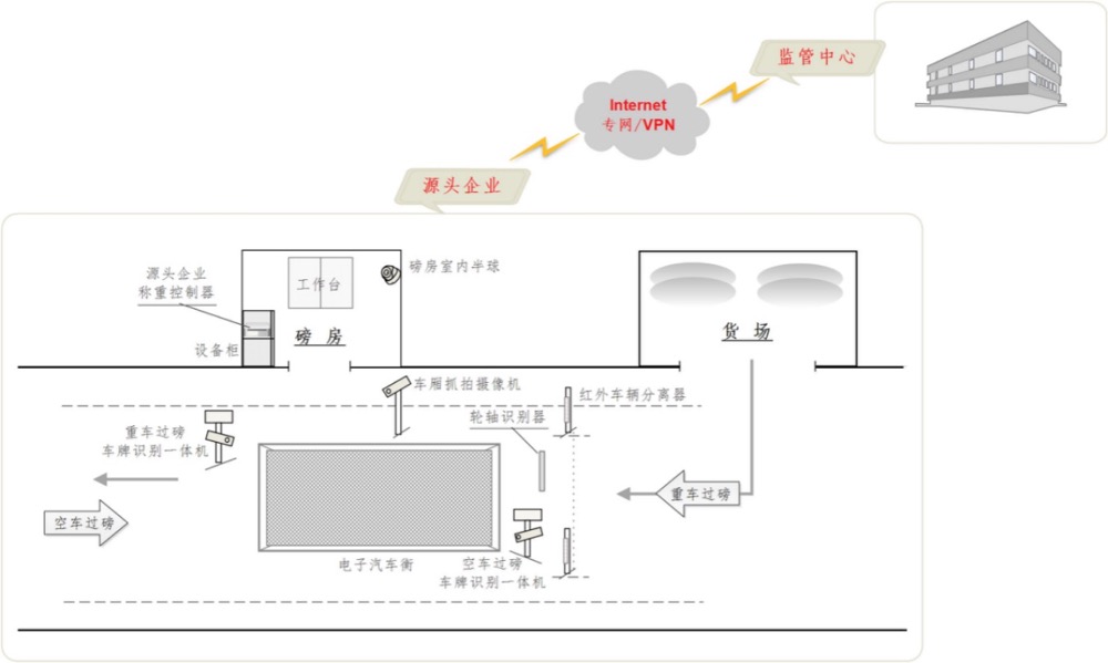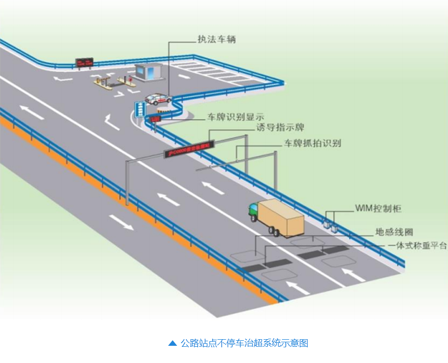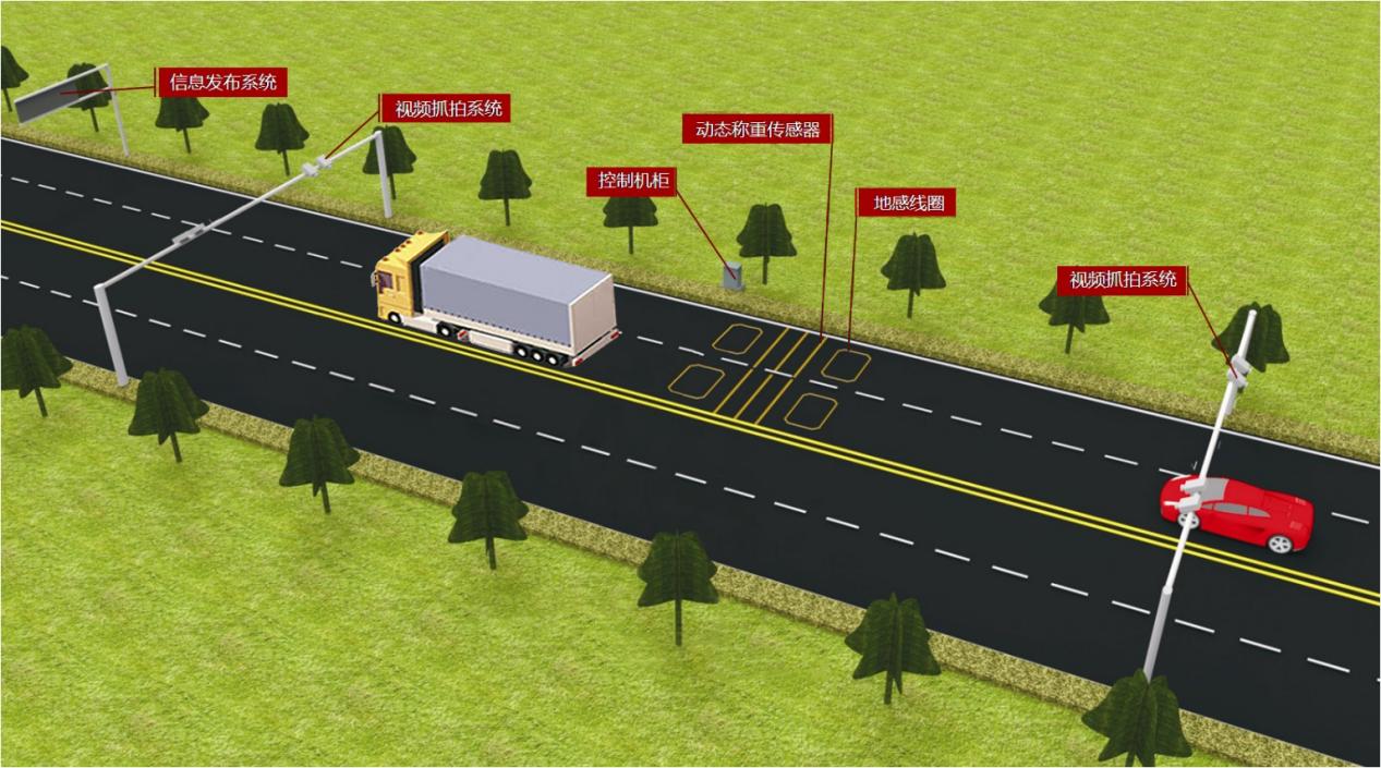 通过网络数据传输及计算机系统软硬件的集成,对车辆及称重信息采集和处理,自动采集车辆轴数、毛重数据,判断车辆是否超载。对过往车辆进行不停车动态称重及车辆相关信息识别来甄别是否有超限超载行为,采取无人值守,执法人员采取事后追究责任。