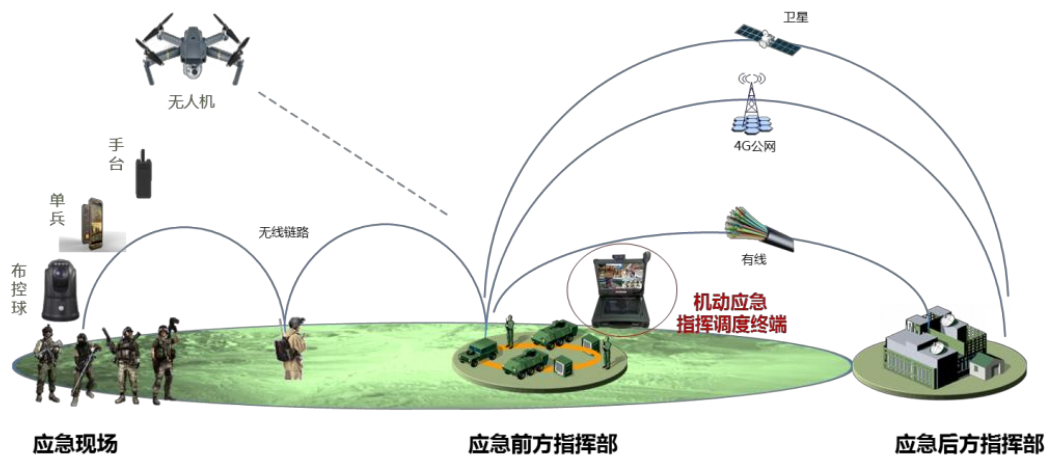 应急融合通讯指挥平台包括应急指挥中心、事故前端音视频采集设备、以及网络通信通讯三大部分,以融合通讯的方式来实现快速调度、信息共享、互联互通,以满足突发事件应急处置中所需要的信息采集、指挥调度和过程监控,真正实现领导决策能:连得通、看得见、听得清 的通信保障任务。