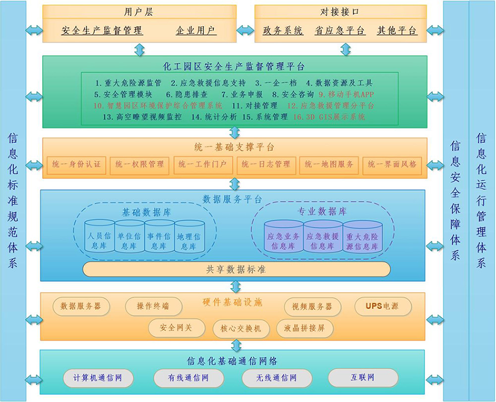 应急安全综合管理平台,接入整合了各个领域业务系统,如化工、矿山、水利、地灾、消防、气象等。保障了各种业务系统最基本的互联互通及统一调度,遵循平台化、组件化的设计思想,采用统一的数据交换、统一的接口标准、统一的安全保障,以保证各子系统的无缝集成。