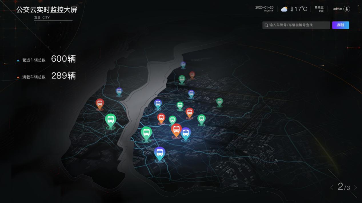 同时页面中展示了两个实时数据:当前营运车辆总数,以及满载车辆数