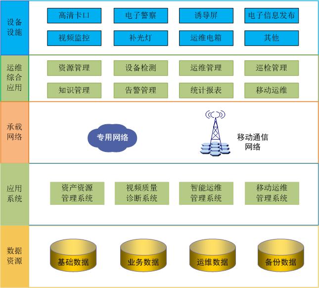 应用系统是交通各应用软件系统,主要包含:资源资产管理系统、视频质量诊断系统、智能运维管理系统、移动运维管理系统等相关应用应用组成。