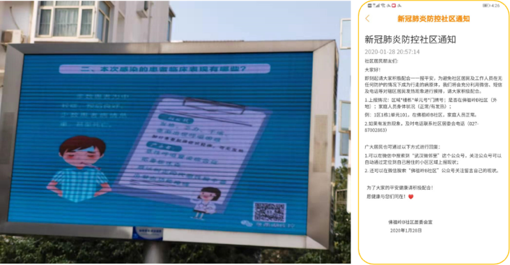 在武汉佛祖岭B社区的疫情防控工作中,智慧基层社会治理综合解决方案为社区防疫宣传教育、健康信息报送、社区疫情监测、困难帮扶、人口流动风险预警等工作提供了技术支撑,通过线上+线下、大数据+智能化+网格化、多措并举,做到入网入格入家庭、管人管车勤宣传,从严做好社区防疫。