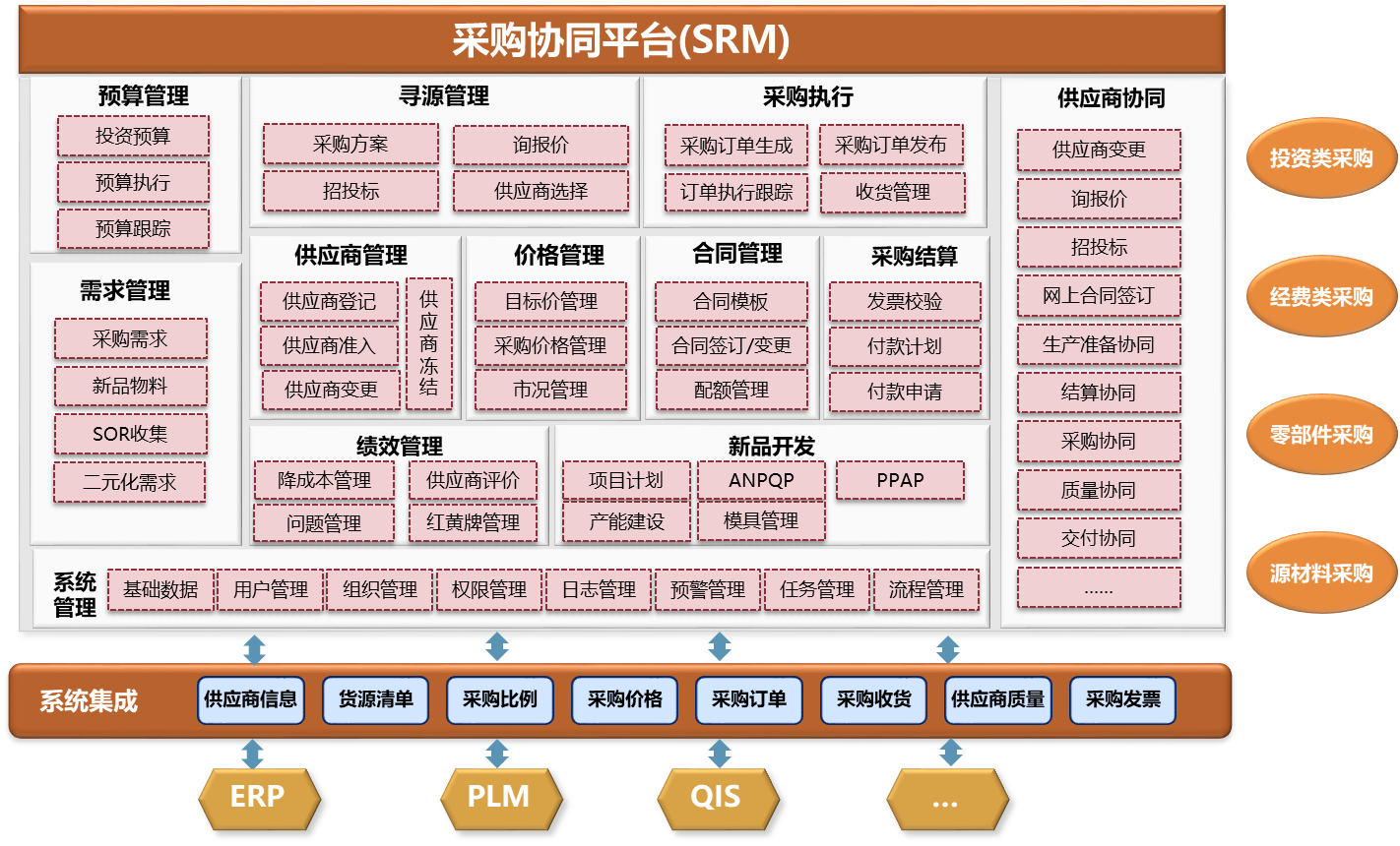 搭建一个三流合一(信息流/物流/资金流)、全生命周期、全流程的采购供应链信息化平台,为企业进行供应链体系优化提供基础支持。