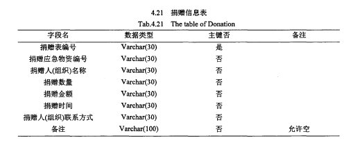 12 | 捐赠信息表 | 捐赠表编号、捐赠人(组织)名称、捐赠防护物资编号、捐赠数量、捐赠金额、捐赠时间、捐赠人(组织)联系方式、备注 |