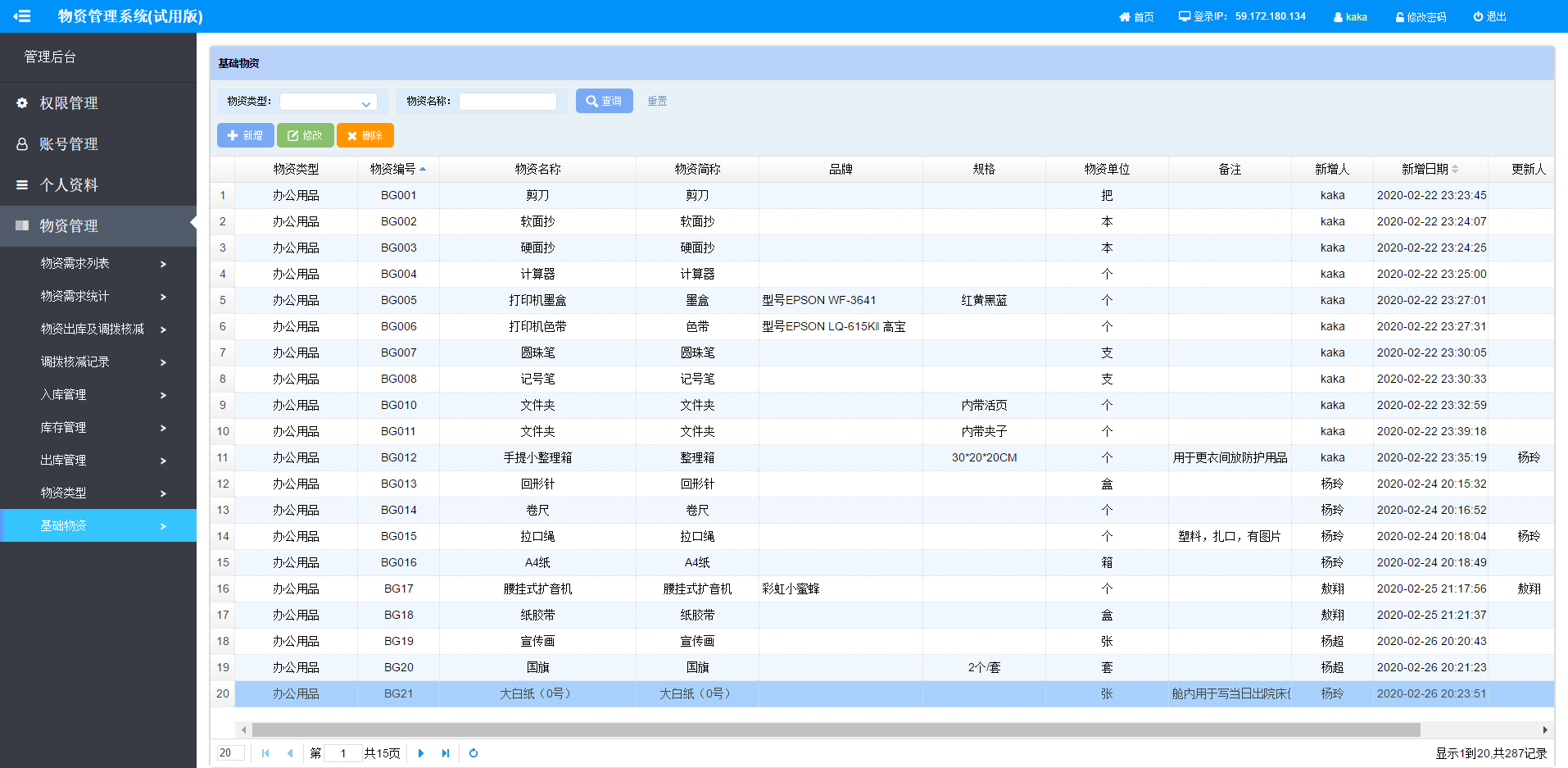 本系统采用了物资自动编码分类存储技术,使得大量类似物品分类更准确(物资分类、物资规格、物资单位等)、更细致(能够自动进行单位换算如:1箱=1000个等),帮助仓储人员提升了物资整理的效率。