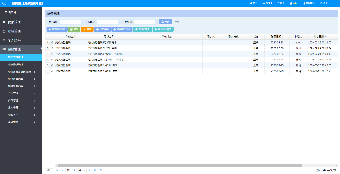 本系统可广泛用于医院、社区、企事业单位和政府单位的物资管理工作中。