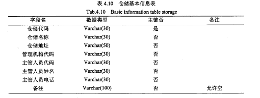 1 | 仓储基本信息表 | 仓储代码、仓储名称、仓储地址、管理机构代码、主管人员姓名、联系方式、备注 |