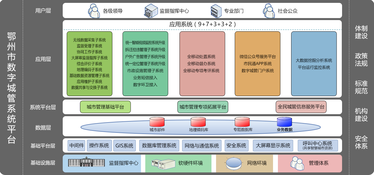 随着经济、社会的高速发展,社会各界对城市环境和城市形象的关注度越来越高,各级地方政府对创建全国文明城市、全国卫生城市更是高度重视。如何提高城市管理水平,快速、高效地解决城市管理问题,为企业、公众、社会组织等提供规范化管理和人性化服务,打造服务型政府,成为各级地方政府工作的重点。随着国家信息化建设进程的不断推进,传统的、被动式的城市管理模式已经难以满足信息化社会的需求,城市管理和执法工作的压力越来越大,在管理体制、管理方式、管理手段和评价体系方面存在较大的不足,很大程度上制约了城市管理工作的高效运转。