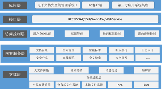 以集中存储为基础,针对非结构化数据的全生命周期进行管理,特别是在涉及到商业秘密、对安全环境要求较高的企业中,为企业降低信息处理成本,加速信息流转,提高信息处理精确性,提升文档访问和流转的安全可控性。