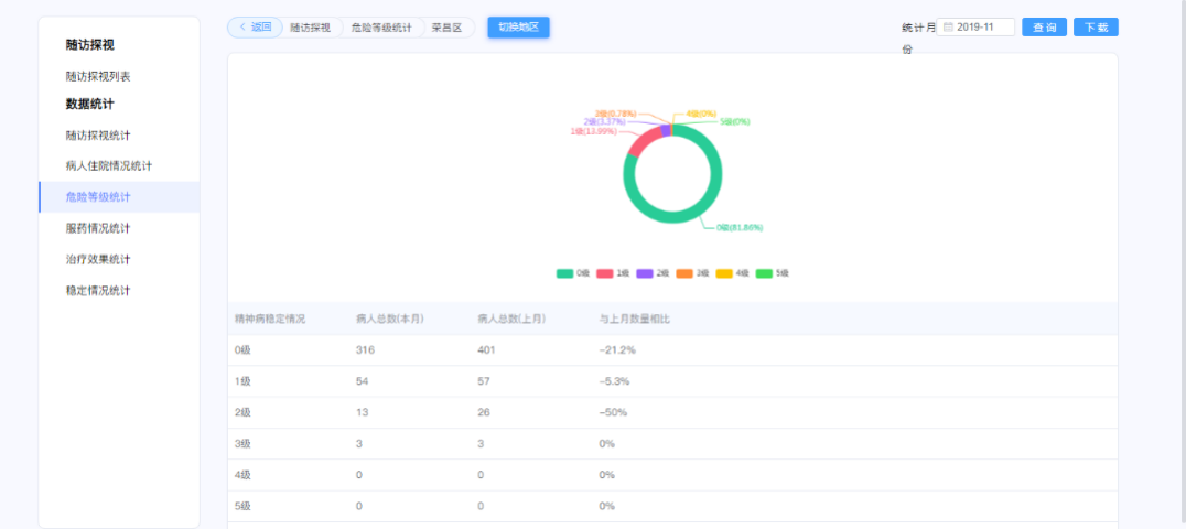 通过平台已完成400余条公示公开内容发布,村干部联审线上审核近40人,精神障碍患者随访2500余次,精神障碍患者出院通知单流转近1300次,数据任务采集数据量达15000余条数据。