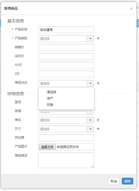 1.4.1商品增加状态如在售、停产等,业务员选择商品的时候都可以通过类别来进行查询