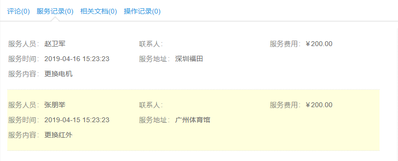 1.5、【项目管理】中,打开任一项项目后,在右边扩展栏增加【服务记录】项,与服务管理相结合,可以查看同一项目所有的服务记录,便于对项目进行跟踪和查询管理。