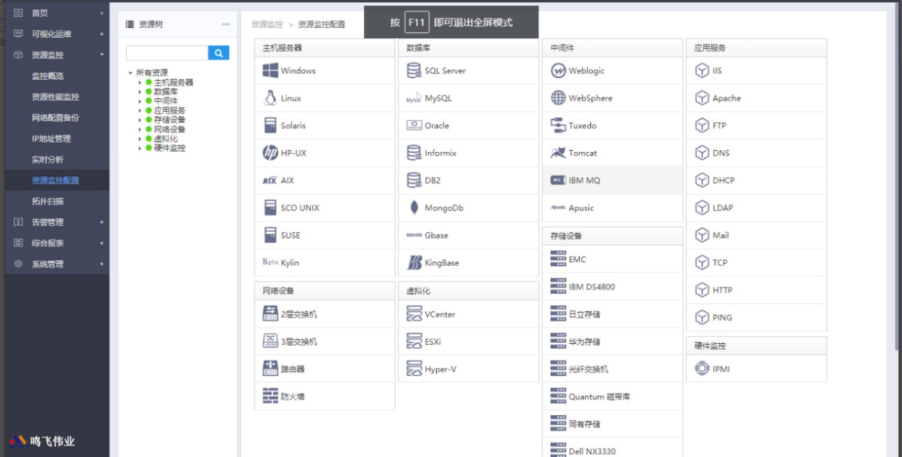 用户通过资源配置可以对整个系统所监控的资源进行配置。