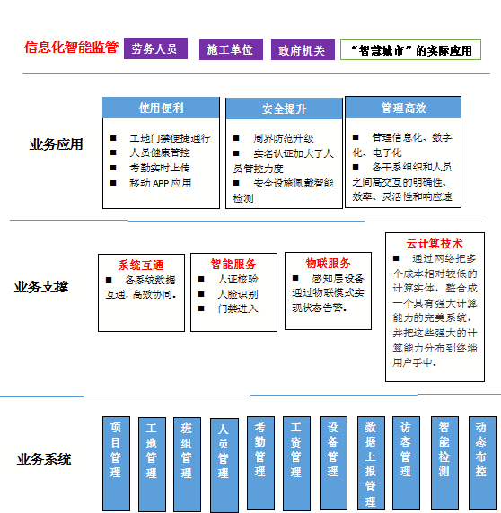 传统的建筑施工企业管理体系已经与时代严重脱节,如何降低管理成本、提升管理效率是建筑施工企业急需解决的问题,这是企业发展的需要,是农民工权益保护的需要,也是和谐社会下公平公正精神的需要。为建筑施工企业管理系统瘦身,所要做的就是将管理流程信息化、数字化、智能化,
