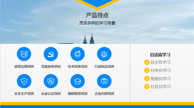 通过构建符合企业特点的知识体系,实现经营管理、技术技能、市场营销、政策法规、行业经验等课程资源的共建共享,在此基础上搭建在线学习的平台,实现学习任务下达,学习进展跟踪,学习效果评测,建立员工学习发展档案,满足企业集中培训、日常学习的需要,协作企业做好培训规划,为培训的组织和实施提供技术保障。