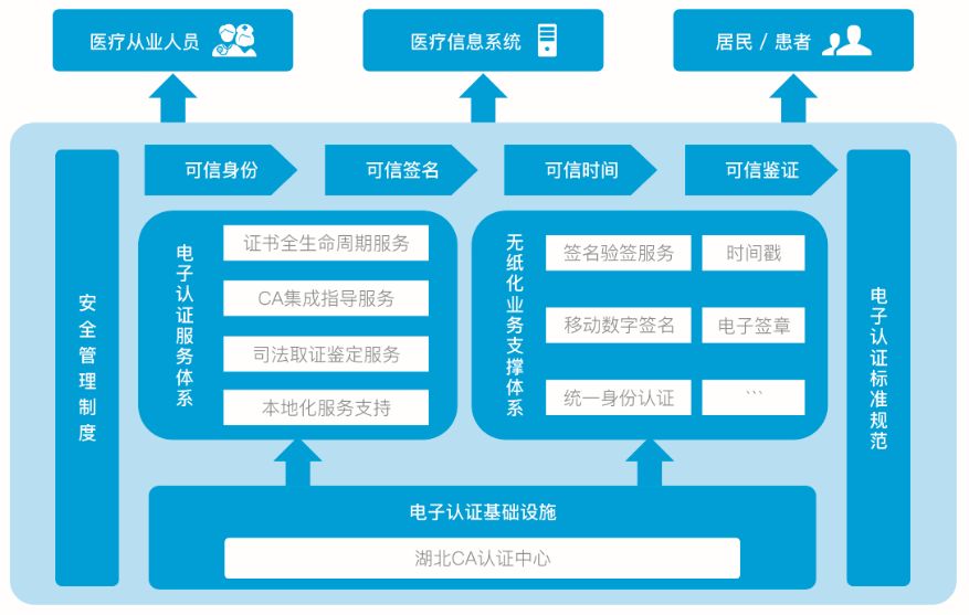 湖北CA医疗健康领域电子认证行业解决方案对医院而言可保证信息数据安全、降本增效;对于患者和居民而言就医就诊更方便。