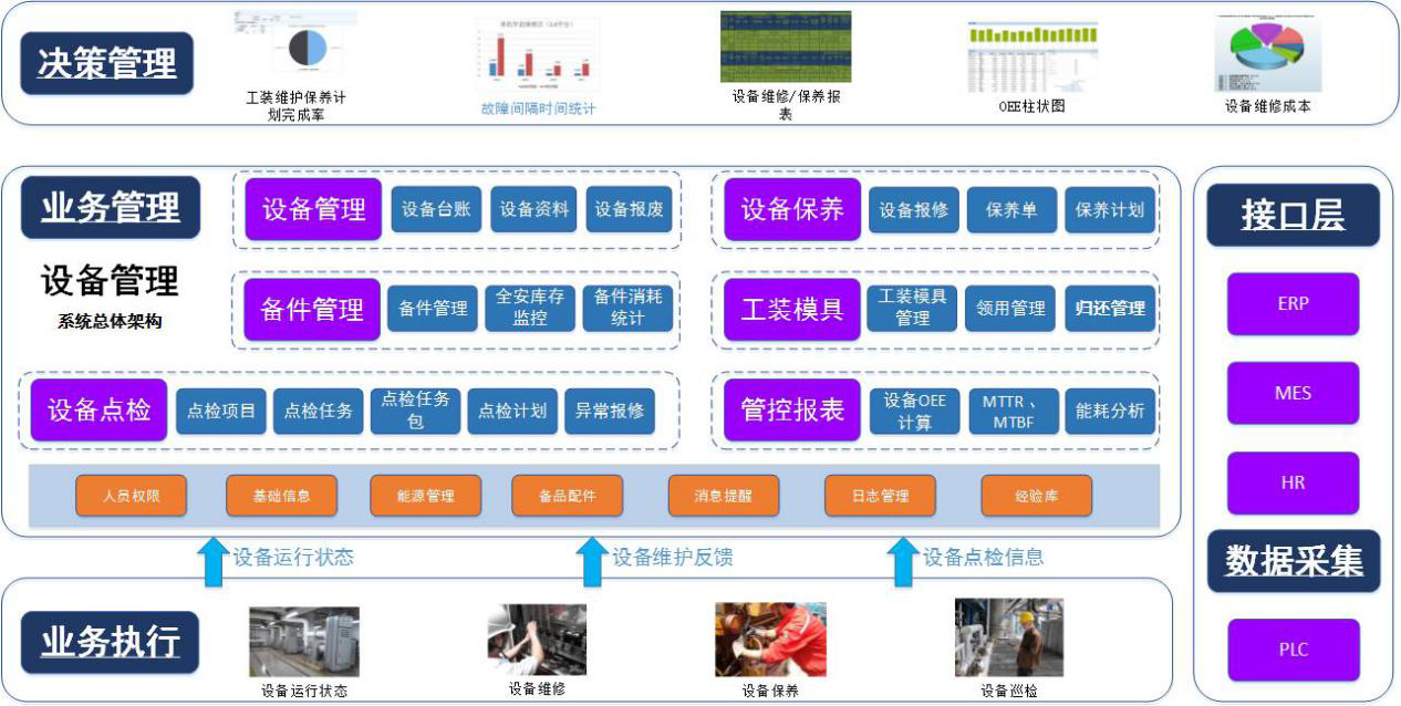 国内工业企业设备管理基于TPM体系建立,主要围绕设备自主维护,专业维修,保养预防三闭环开展日常管理工作,通过对设备日常管理过程提炼数据来推进改善。